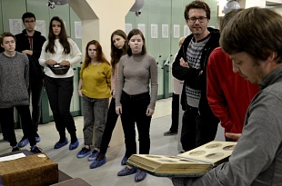 30 августа в рамках летней школы «Культура тоталитарного oбщества и практики памяти», проводимой НИУ ВШЭ-Пермь, состоялось занятие на английском языке начальника научно-исследовательского отдела Государственного архива Пермского края Александра Глушкова. Участники летней школы, среди которых студенты из Германии и Бельгии, познакомились с проектами архива в области использования документов и популяризации архивного фонда, узнали о принципах комплектования учреждения и методах реставрации документов.