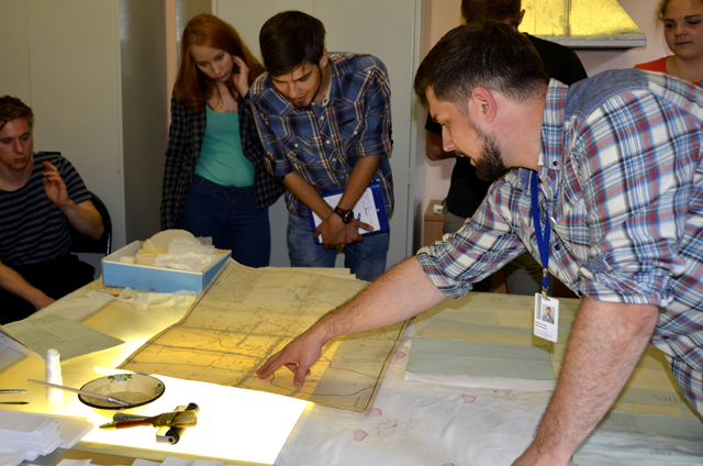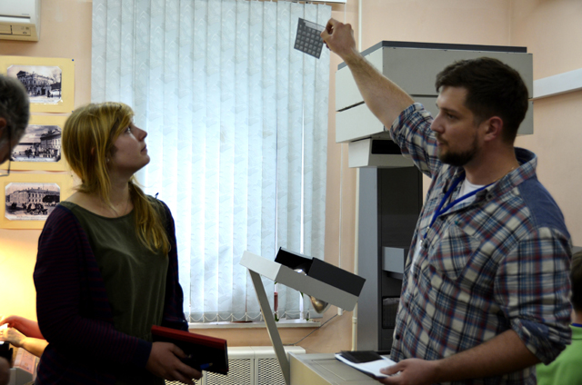 Для иностранных гостей сотрудники архива провели ознакомительную экскурсию на английском языке с обзором читальных залов, хранилищ документов и продемонстрировали современное оборудование, с помощью которого проводятся работы по оцифровке и копированию. Сотрудники лаборатории обеспечения сохранности документов раскрыли студентам некоторые секреты своего мастерства и особенности проведения реставрационных работ, что особенно впечатлило участников экскурсии.