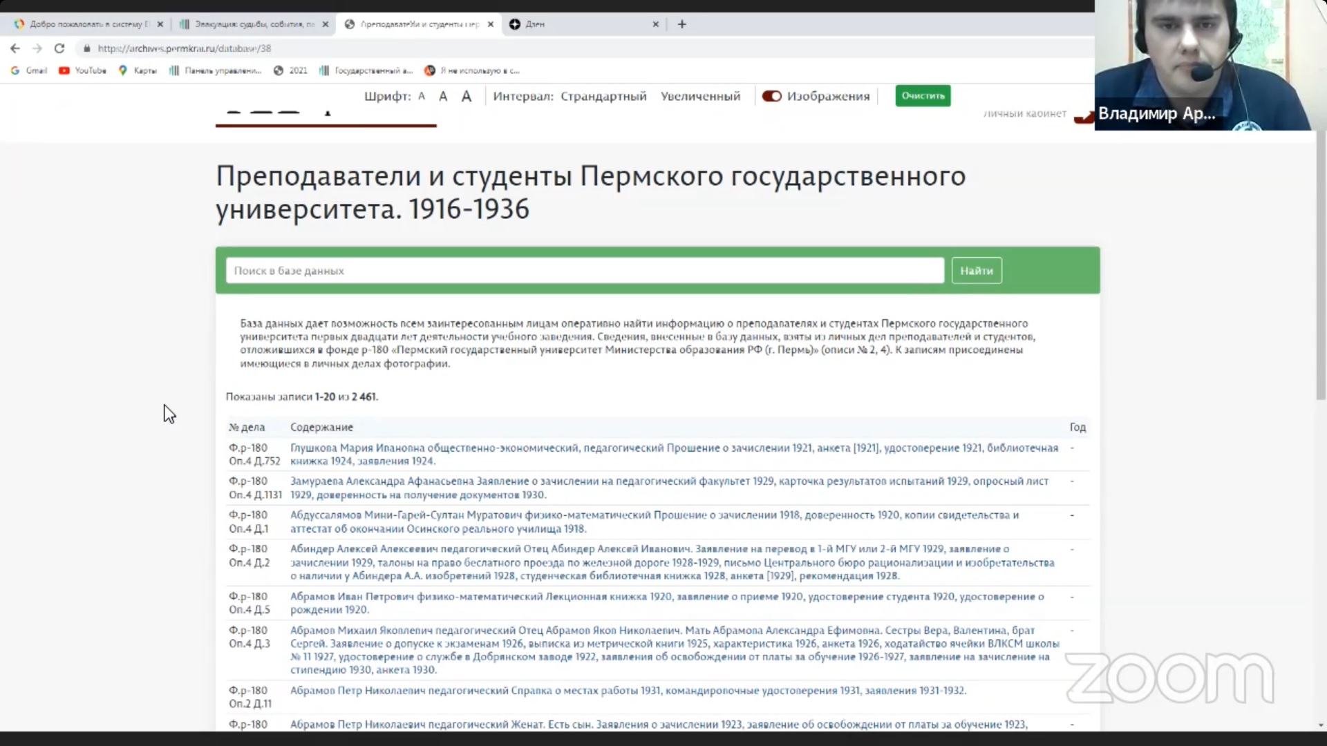 Докладчики рассказали об электронных тематических базах данных и виртуальных проектах, разрабатываемых архивом. Данные проекты предназначены для исследователей и всех интересующихся историей Пермского края. По словам архивистов, материалы, размещенные в базах данных, могут быть полезны школьникам при изучении истории Пермского края и реализации учебных исследовательских работ.