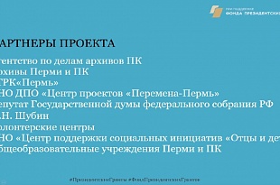 Наряду с этим будут собраны и оцифрованы сведения о юных жителях Пермского края, активных участников исторических событий на его территории. Данный архив будет доступен всем заинтересованным лицам и может использоваться при организации учебно-воспитательного процесса на всех ступенях образования в рамках реализации патриотического воспитания.