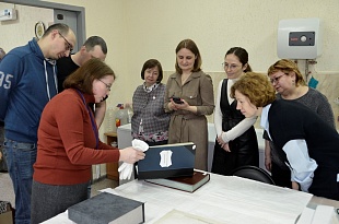 В ходе экскурсии, проведенной начальником научно-исследовательского отдела архива Ириной Деминой, работники нотариальной палаты побывали в архивохранилищах, читальных залах, лабораториях информационных технологий и обеспечения сохранности архивных документов. Особое внимание было уделено документам по истории нотариата в Прикамье, в частности, делам нотариальных контор. Особый интерес экскурсантов вызвало завещание Ф.Г. Каменского, а также картографические документы.