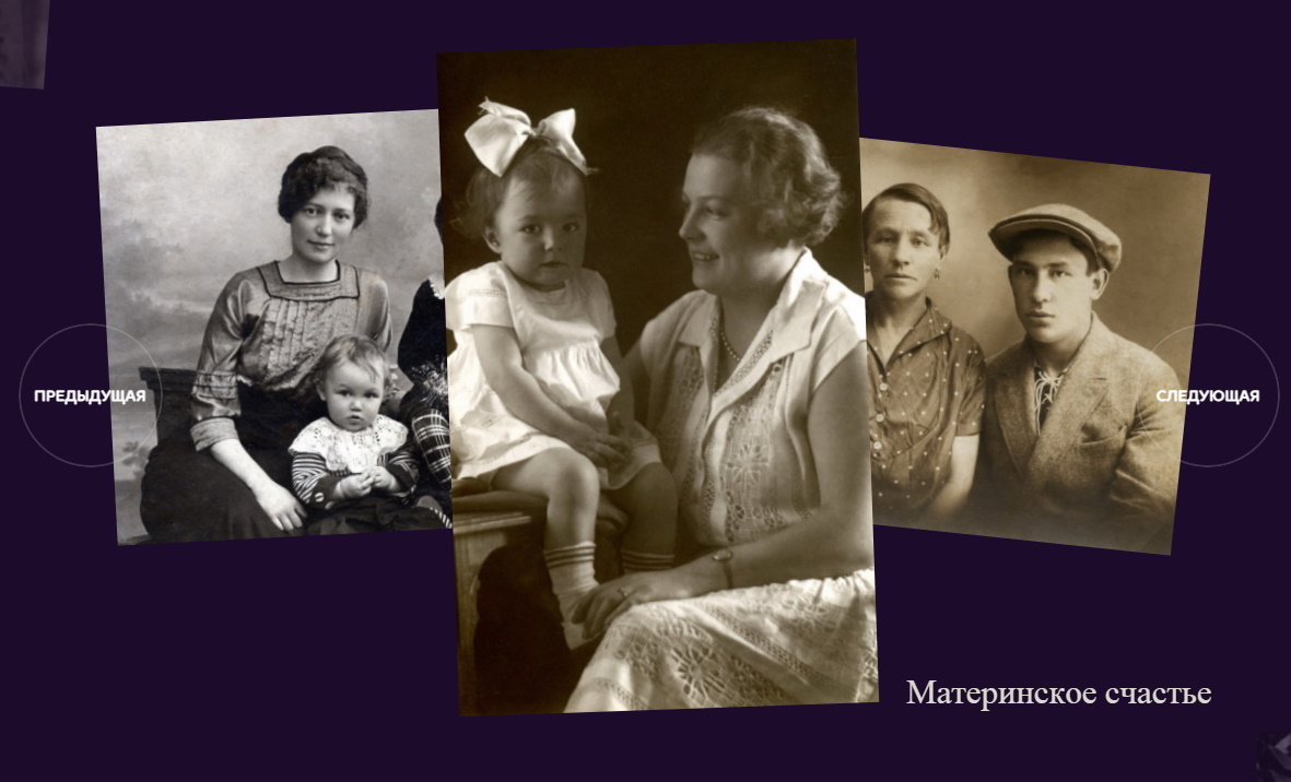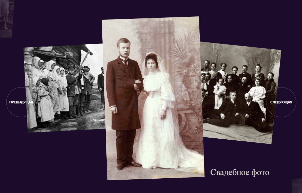 Для удобства просмотра все фотографии поделены на тринадцать тематических разделов: «У крыльца», «Во дворе дома», «На фоне дома», «Свадебное фото», «Супружеская чета», «Большая семья», «Детский снимок», «Многочисленное семейство», «С мамой и папой», «Материнское счастье», «На отдыхе», «В интерьерах дома», «Светлейшие князья».