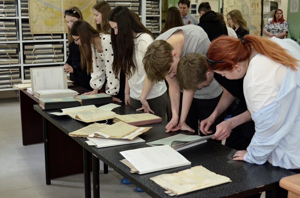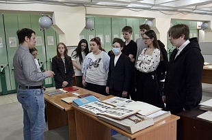 Школьникам была представлена размещенная в читальных залах архива выставка «Год коренного перелома: люди и сражения». Основные документы, представленные на выставке – воспоминания фронтовиков о битвах 1943 года, послевоенная переписка ветеранов, черновики и фрагменты художественных, публицистических и научных произведений, посвященных сражениям 1943 года.