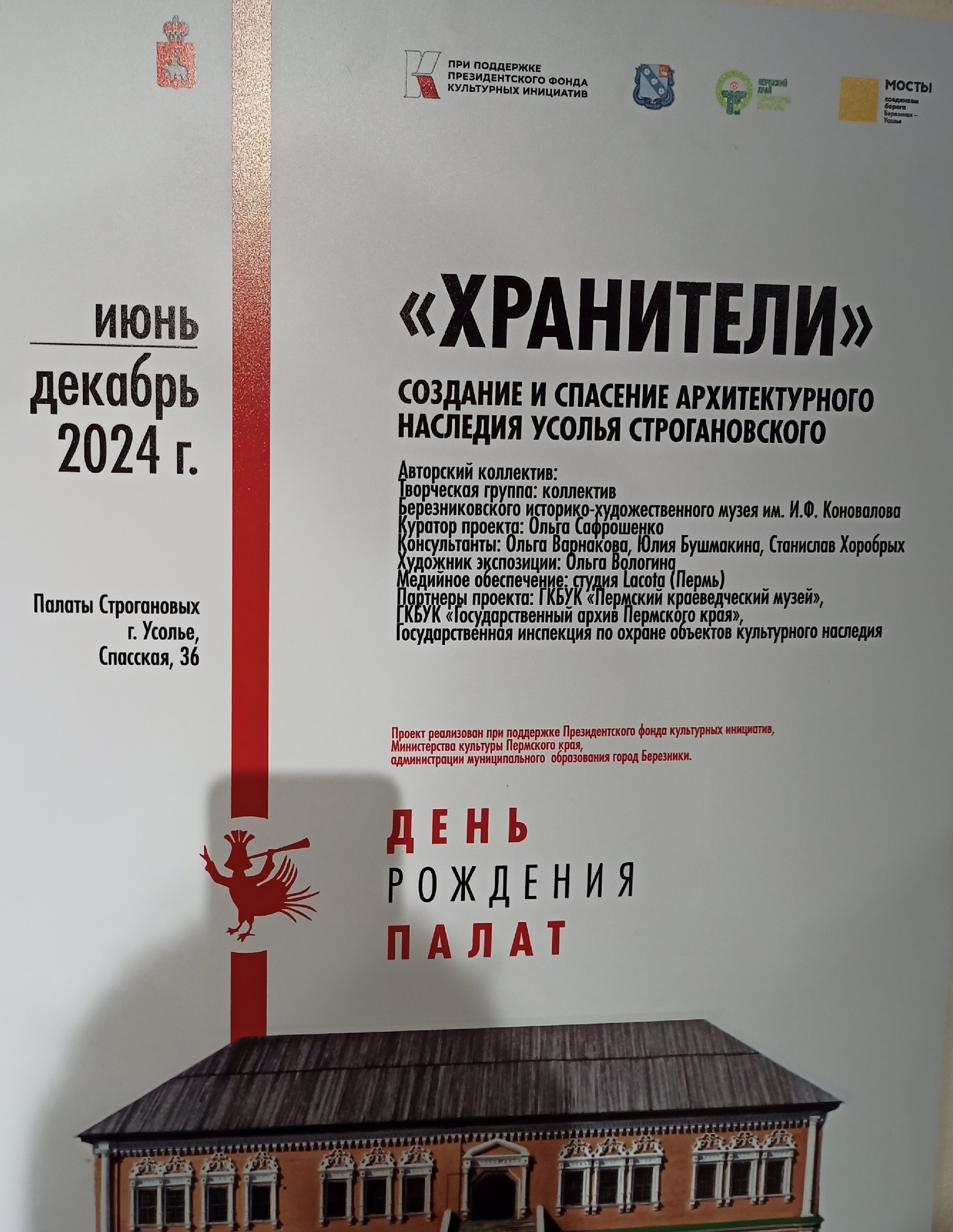 Государственный архив Пермского края стал партнером» выставки «Хранители», представленной в музее «Палаты Строгановых». Выставка рассказывает об истории сохранения и спасения архитектурного наследия Усолья Строгановского и посвящена архитекторам, реставраторам, искусствоведам, благодаря которым удивительные дворцы и храмы Усолья дошли до наших дней.