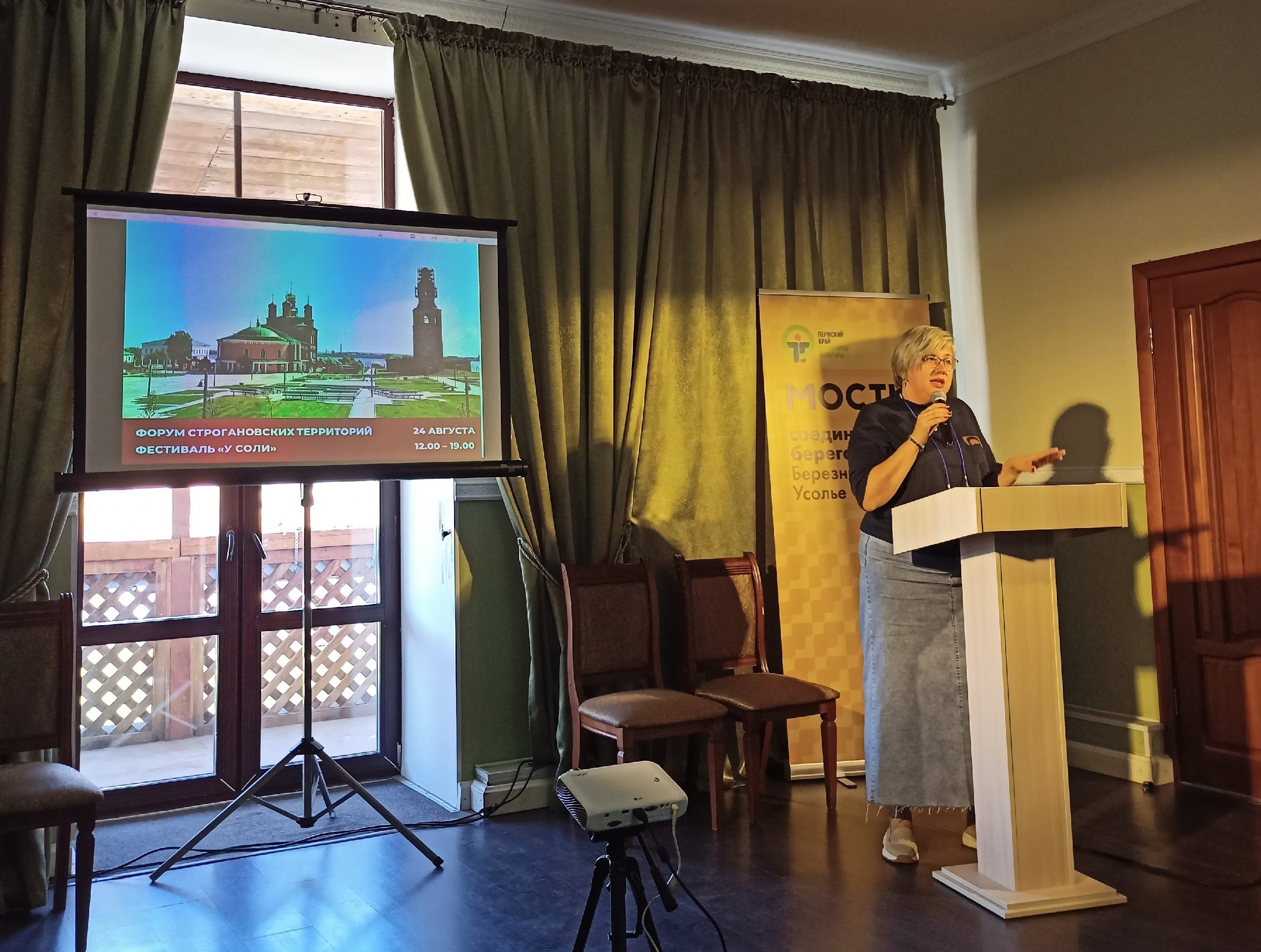 Форум Строгановских территорий прошел в рамках фестивального проекта «День рождения Палат» в честь 300-летия палат Строгановых. Проект реализуется Березниковским историко-художественным музеем при поддержке Президентского фонда культурных инициатив, проекта «Мосты. Соединяем берега», проектного офиса «Усолье Строгановское».