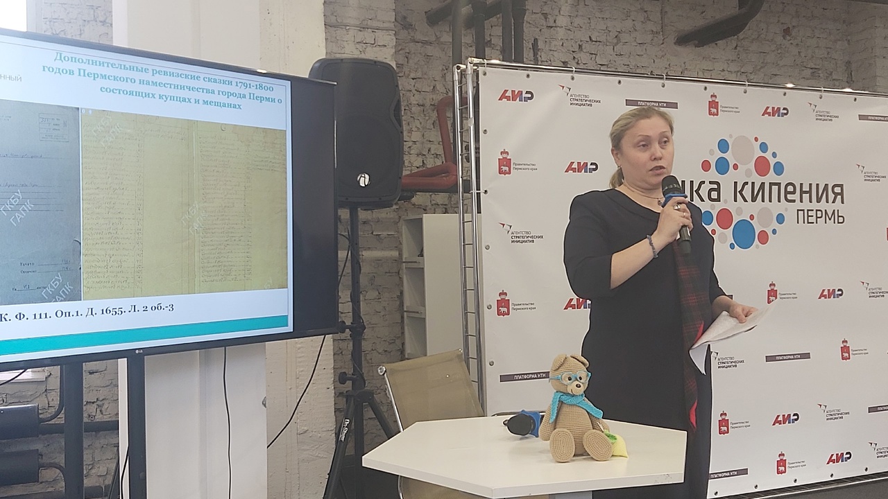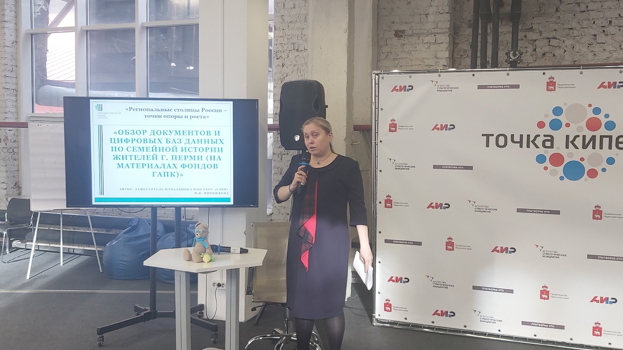 С докладом по теме «Обзор документов и цифровых баз данных по семейной истории жителей г. Перми (на материалах фондов ГАПК)», посвященным 300-летнему юбилею Перми выступила Наталья Пирожкова, заместитель начальника научно-исследовательского отдела ГАПК. Доклад вызвал у слушателей вопросы общих и частных генеалогических исследований, особенностям работы с информационной системой «Архивы Прикамья».