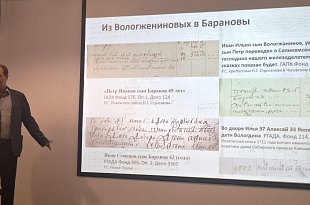 С докладом по теме «Тематические базы данных Государственного архива Пермского края на портале «Архивы Прикамья» выступили заместитель директора ГАПК по науке и связям с общественностью Елена Шестакова и начальник научно-исследовательского отдела ГАПК Ирина Демина. В своем выступлении они сделали подробный обзор по пяти базам данных, представляющих генеалогический интерес: «Клировые ведомости церквей Пермской губернии», «Формулярные и послужные списки в фондах ГАПК», «Преподаватели и студенты Пермского государственного университета. 1916-1936», «Мещане города Перми» и «Пермские дачники в 1900-1920 е гг.».