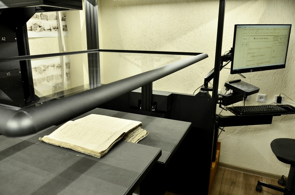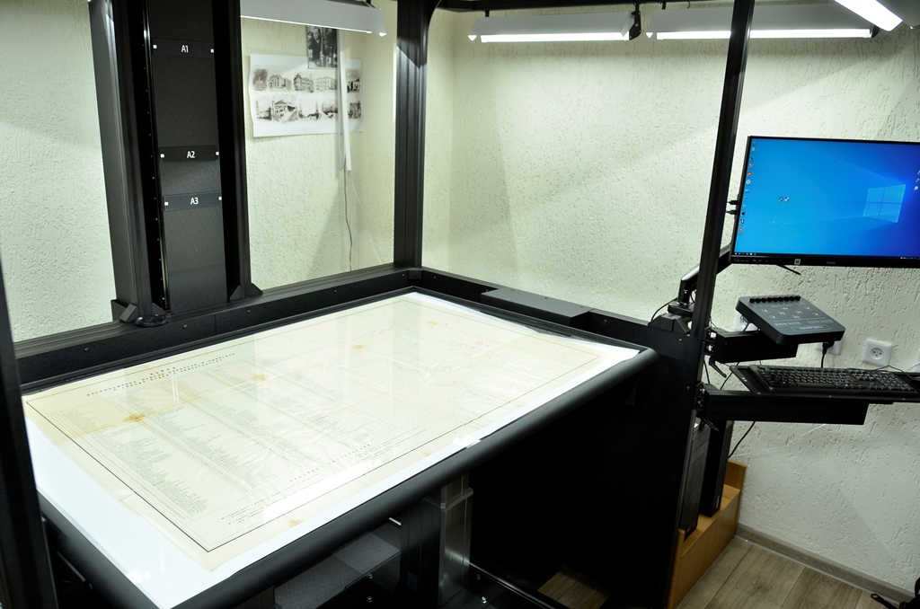 С помощью сканера возможна оцифровка документальных материалов формата свыше А0, в том числе карт, чертежей, живописи, графики, а также книг, журналов, газетных подшивок с большим разворотом и широким корешком. На новом оборудовании возможно бережно отсканировать ветхие дела толщиной до 75 см, причем время сканирования любого образа составляет меньше минуты.