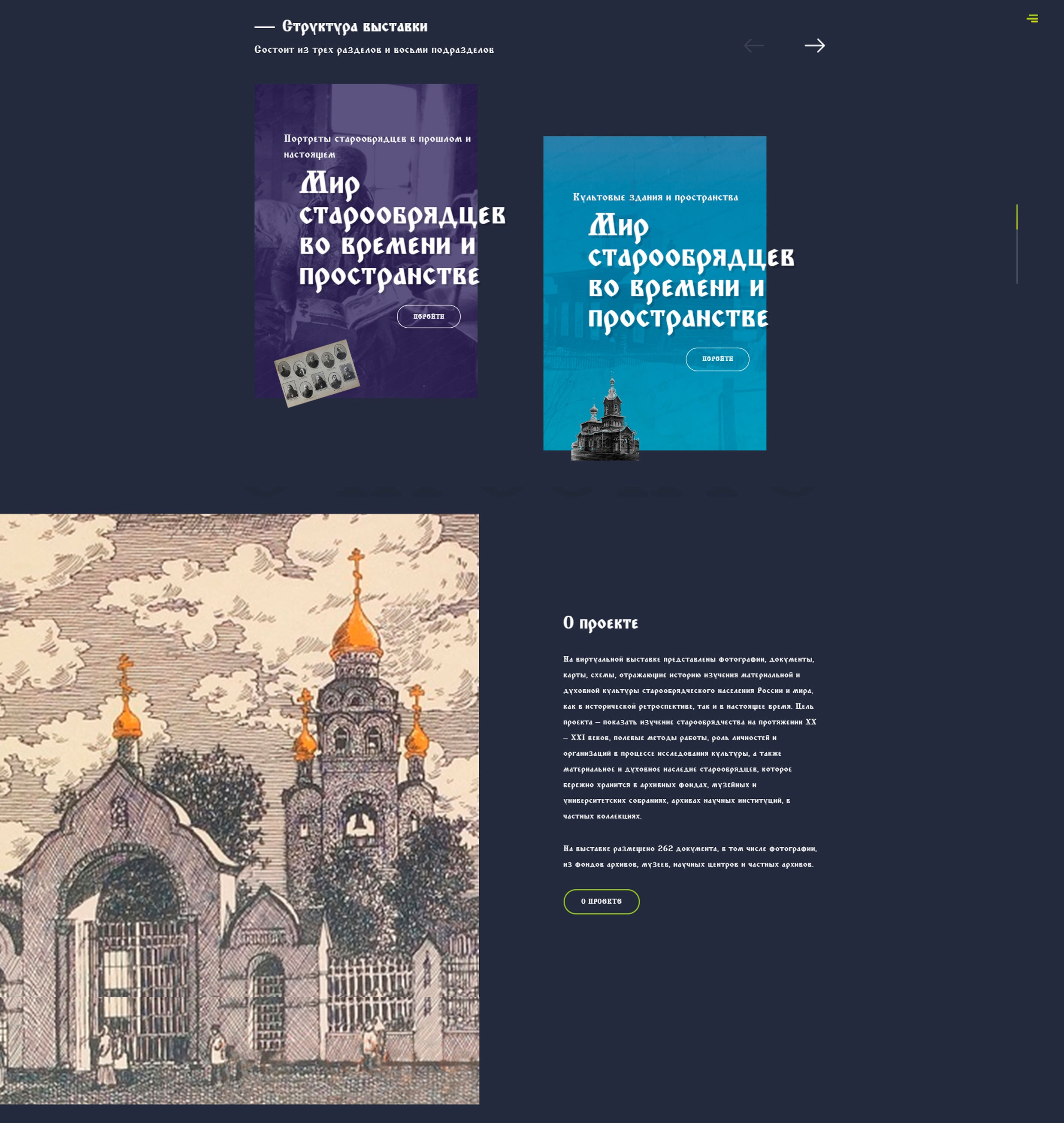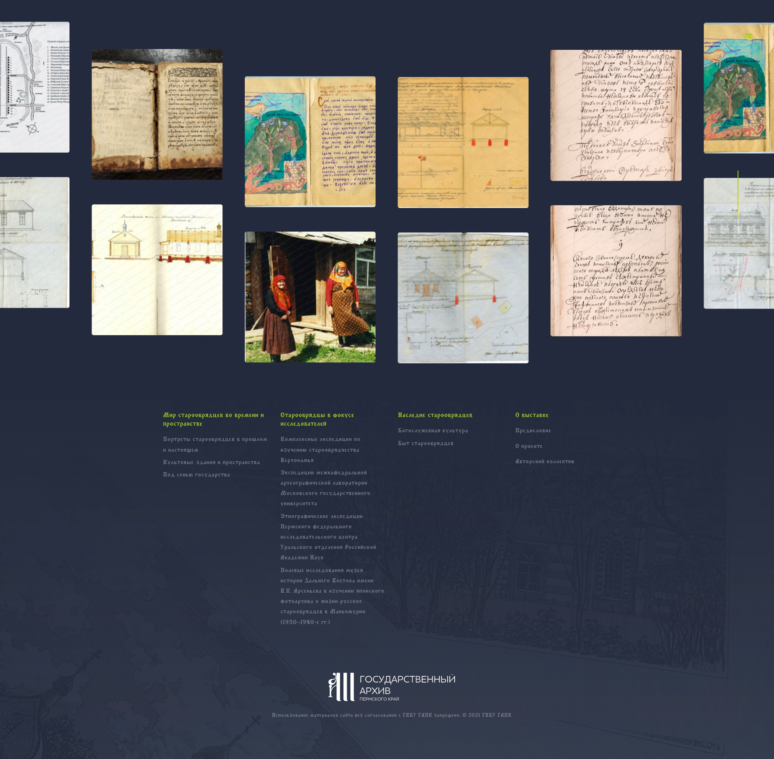 Государственный архив Пермского края представляет международный виртуальный выставочный проект «Старообрядчество: исследователи, экспедиции, наследие». На виртуальной выставке представлены фотографии, документы, карты, схемы, отражающие историю изучения материальной и духовной культуры старообрядческого населения России и мира, как в исторической ретроспективе, так и в настоящее время. Цель проекта – показать изучение старообрядчества на протяжении XX – XXI веков, полевые методы работы, роль личностей и организаций в процессе исследования культуры, а также материальное и духовное наследие старообрядцев, которое бережно хранится в архивных фондах, музейных и университетских собраниях, архивах научных институций, в частных коллекциях.