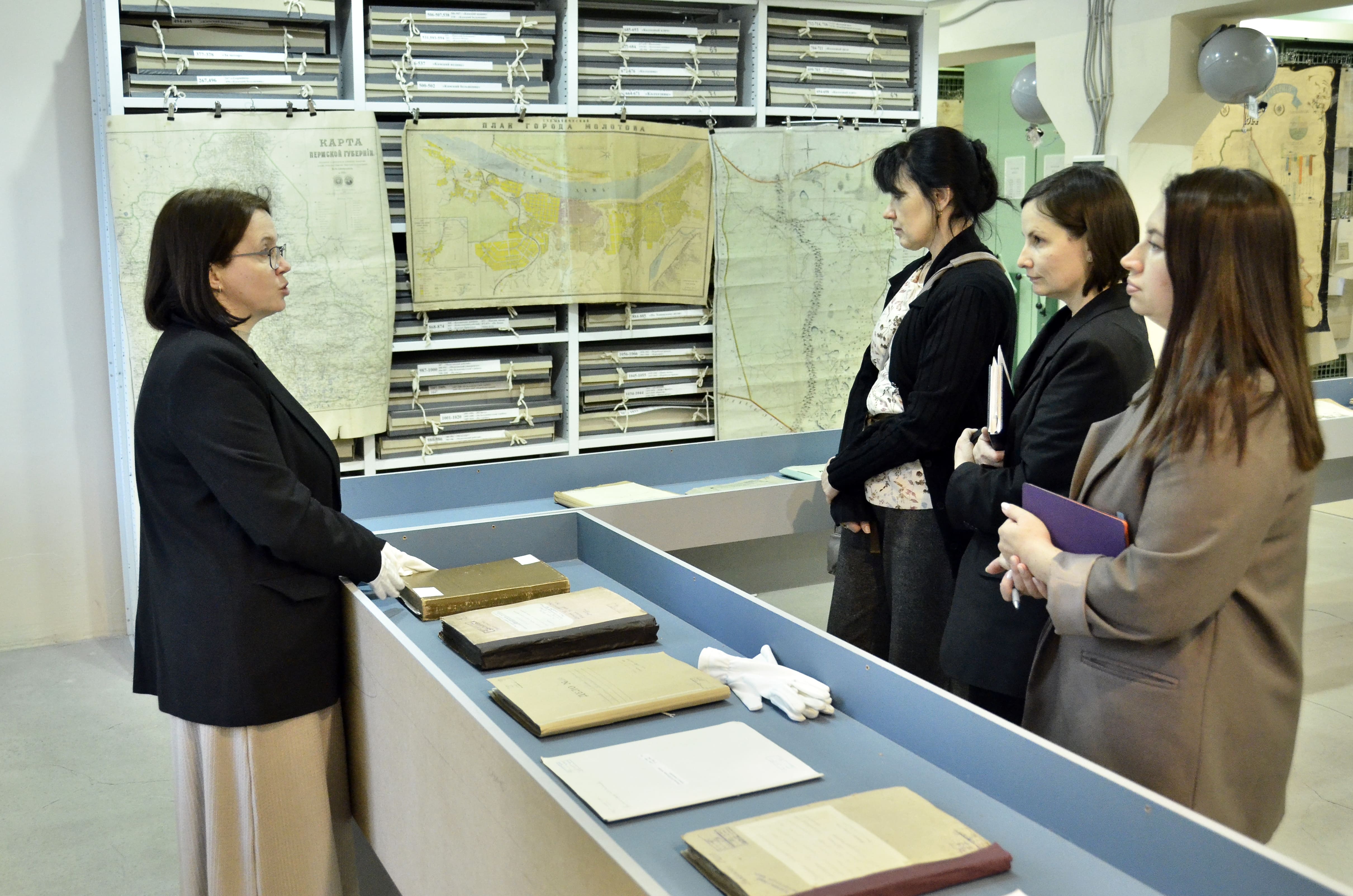 Сотрудники Комитета ЗАГС смогли увидеть редкие архивные документы по истории государственного управления в Прикамье: планы города Перми XIX – начала XX века, периодическая печать XIX-XX вв., императорские указы об образовании Пермского наместничества, переписка Пермского наместнического правления с разными лицами о назначении их на службу в учреждения наместничества, формулярный список губернатора Карла Федоровича Модераха, обязательные постановления Пермской городской управы и городской Думы, решения облисполкома и горисполкома, фотоальбомы из фондов личного происхождения, метрические и ревизские сказки г. Перми.