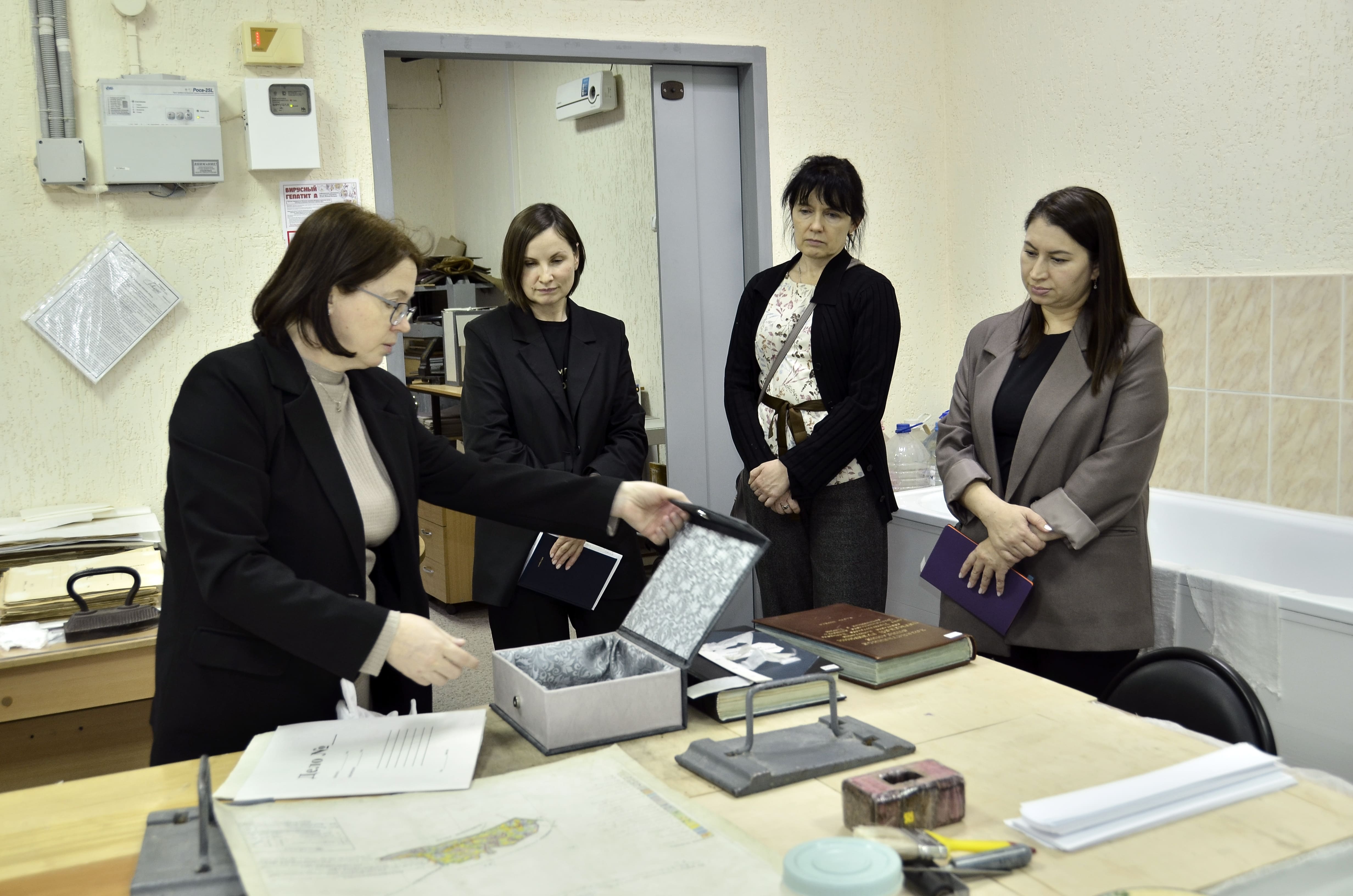 В ходе экскурсии, которую провела начальник научно-исследовательского отдела Ирина Демина, гости архива побывали в архивохранилищах, читальных залах, секторе информационных технологий и лаборатории обеспечения сохранности архивных документов.