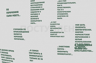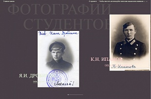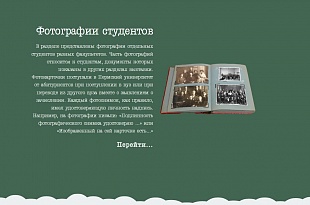 Документы большинства разделов представлены взятой из них яркой цитатой. В разделе «Личные документы студента» демонстрируются разные виды студенческих документов. В разделе «Фотографии студентов» собраны фотоснимки отдельных студентов, сделанные в год их поступления в вуз.