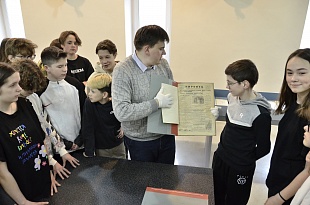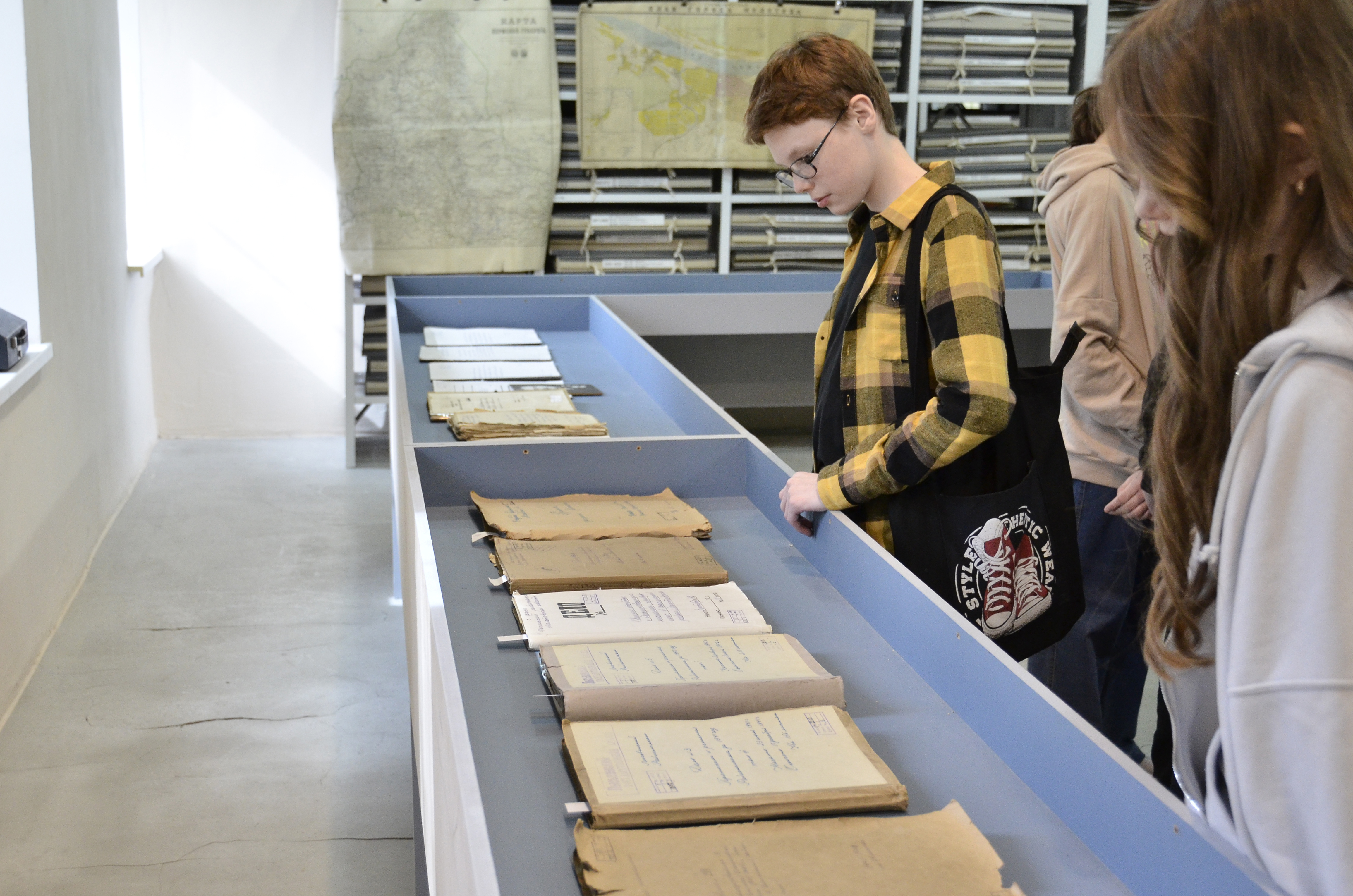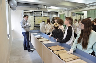 В ходе экскурсии, которую провел главный археограф научно-исследовательского отдела Владимир Арестов, учащиеся побывали в архивохранилищах.