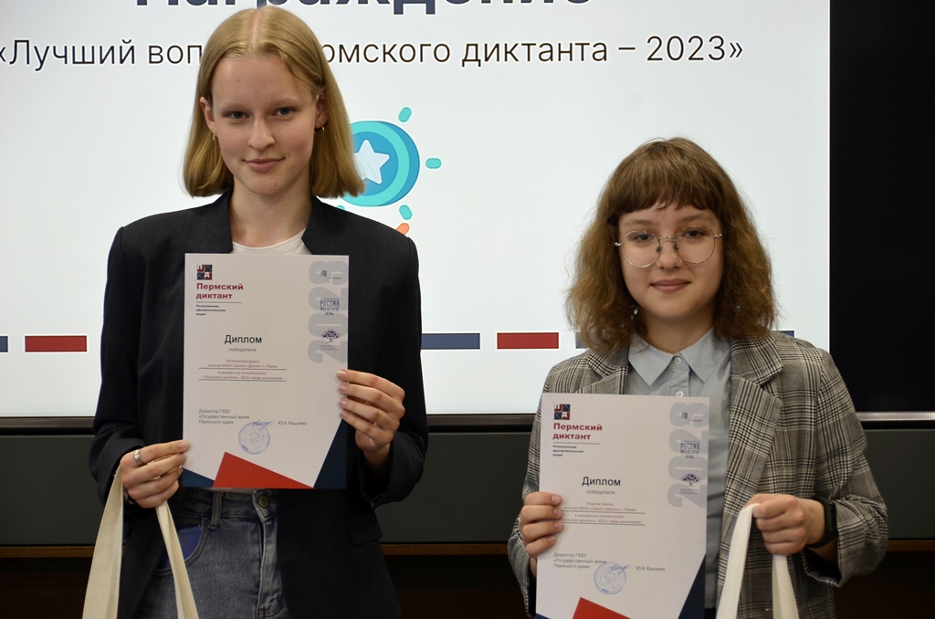 Участники, набравшие 30 баллов на сайте и от 30 до 28 баллов на площадках, были награждены дипломами и памятными подарками. Все участники Пермского диктанта получили сертификаты об участии в акции с указанием набранных баллов.