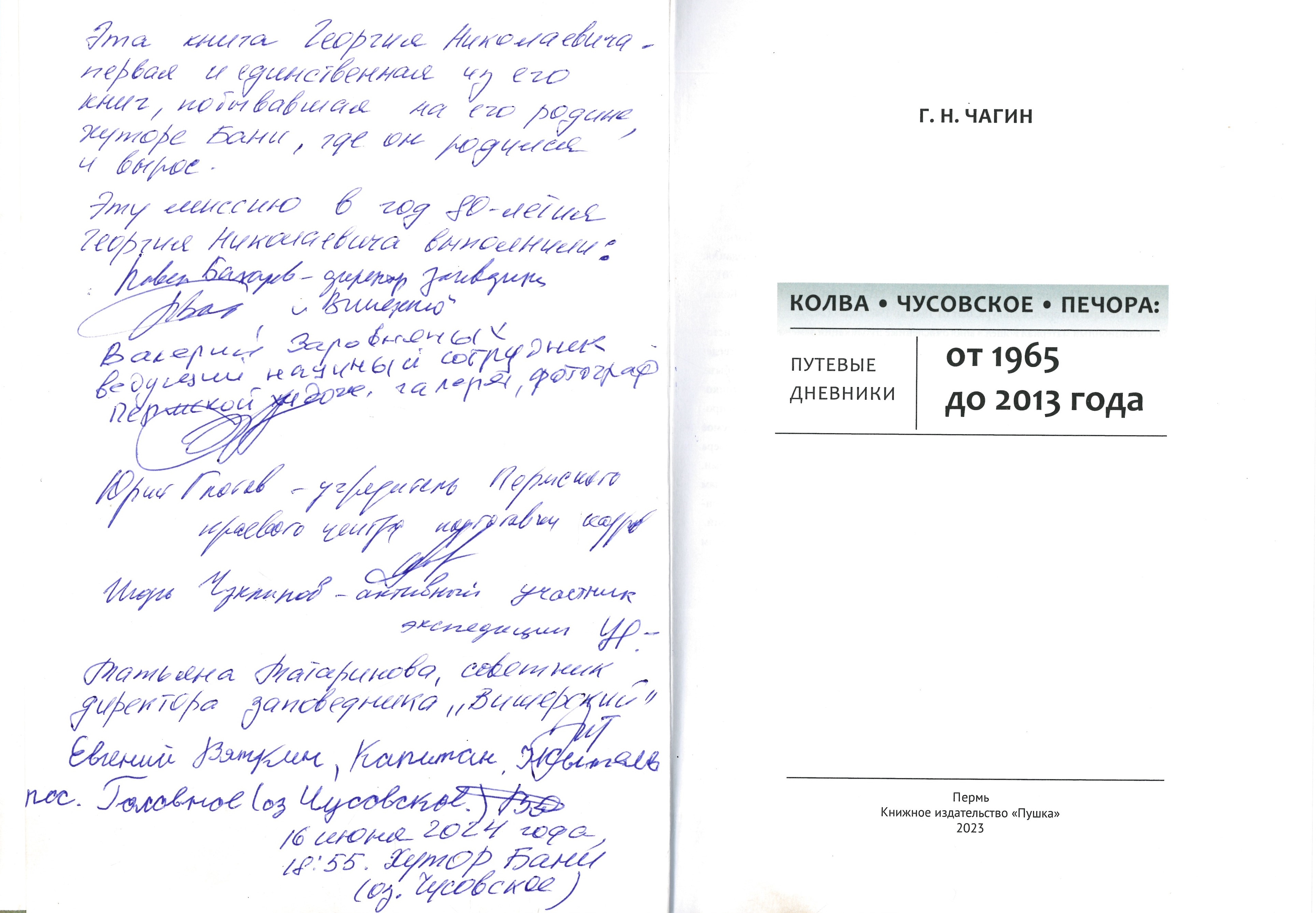 Для участников встречи директор архива Юлия Анатольевна Кашаева провела экскурсию по учреждению, показав лаборатории по оцифровке и реставрации документов, архивохранилище, где хранятся материалы фонда Георгия Николаевича. Гости рассказали о своей поездке на озеро Чусовское, которая состоялась в память о Георгии Николаевиче Чагине. Во время встречи гости передали в личный фонд Георгия Николаевича Чагина его книгу «Колва, Чусовское, Печора: история, культура, быт от 1941 до 1960 года», которая побывала с ними на малой родине этнографа.