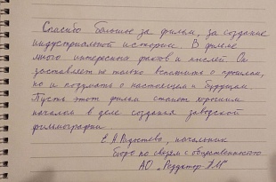 С приветственными словами к участникам показа и рассказом об истории подготовки кинопроекта выступила директор «Музея истории Пермского моторостроения» Валерия Гаврилова. Начальник научно-исследовательского отдела краевого архива Ирина Демина рассказала о документальных материалах по истории пермского авиадвигателестроения, находящихся на хранении в Государственном архиве Пермского края.
