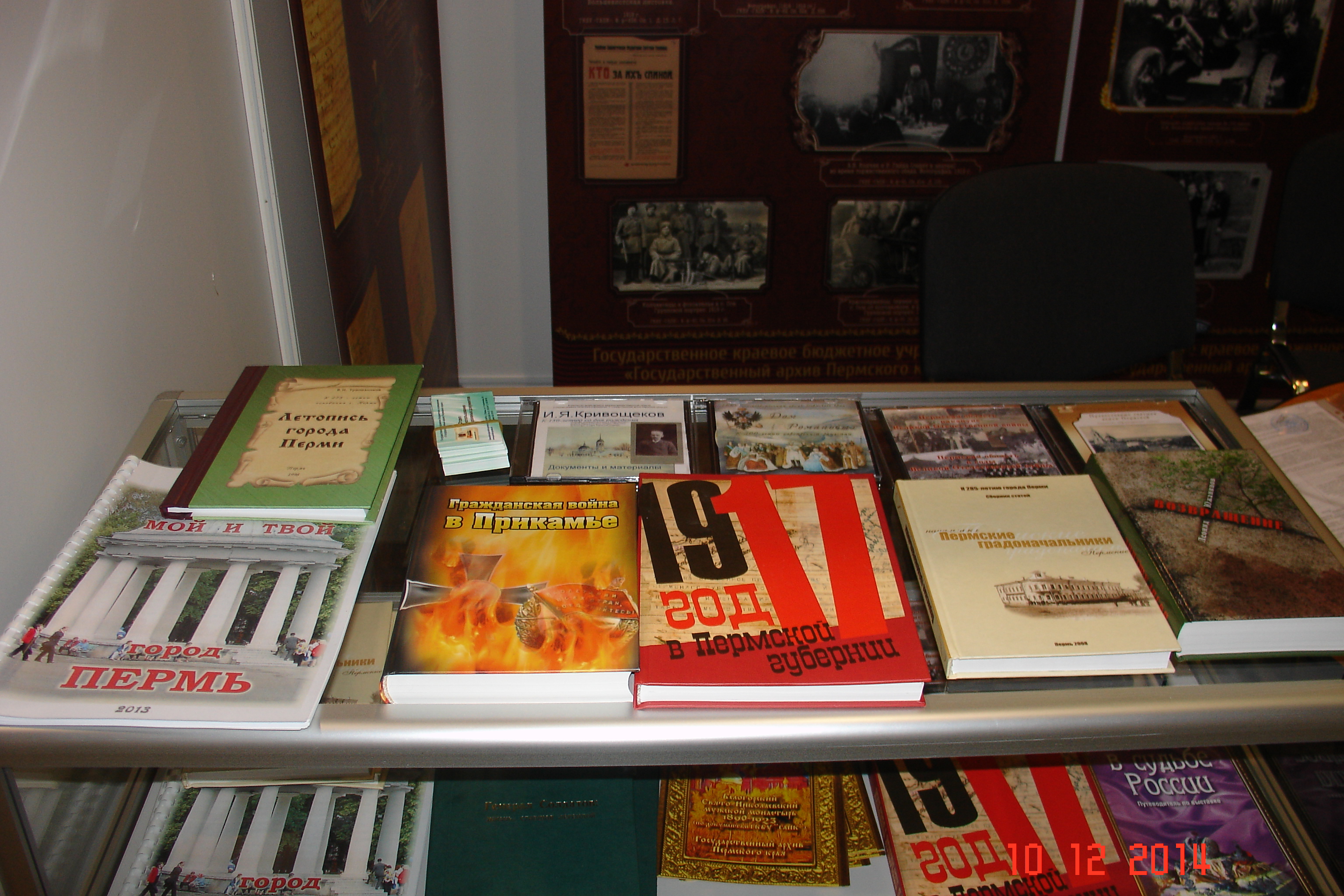 Посетители выставки имели возможность приобрести печатную продукцию и CD-диски «Мгновения истории в виртуальном мире», «Пермская область накануне Великой Отечественной войны и Пермская область в годы Великой Отечественной войны», «Православные святыни земли Пермской», «Летопись города Перми» В.Н. Трапезникова, сборники документов «Гражданская война в Прикамье», «1917 год в Пермской губернии», раскраска «Твой и мой город Пермь».