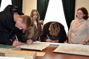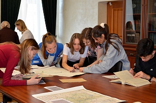 Начальник научно-исследовательского отдела архива Ирина Демина провела для будущих историков мастер-класс. Участникам мероприятия было предложено самостоятельно найти отдельные населенные пункты Пермской губернии на картах, составленных И.Я. Кривощековым, скопировать фрагмент карты с обозначением найденного населенного пункта и близлежащими географическими объектами и выявить дополнительную информацию о населенном пункте по архивным справочникам второй половины XIX – начала XX века. Такая работа с историческими картами для студентов стала интересным опытом по изучению первоисточников.