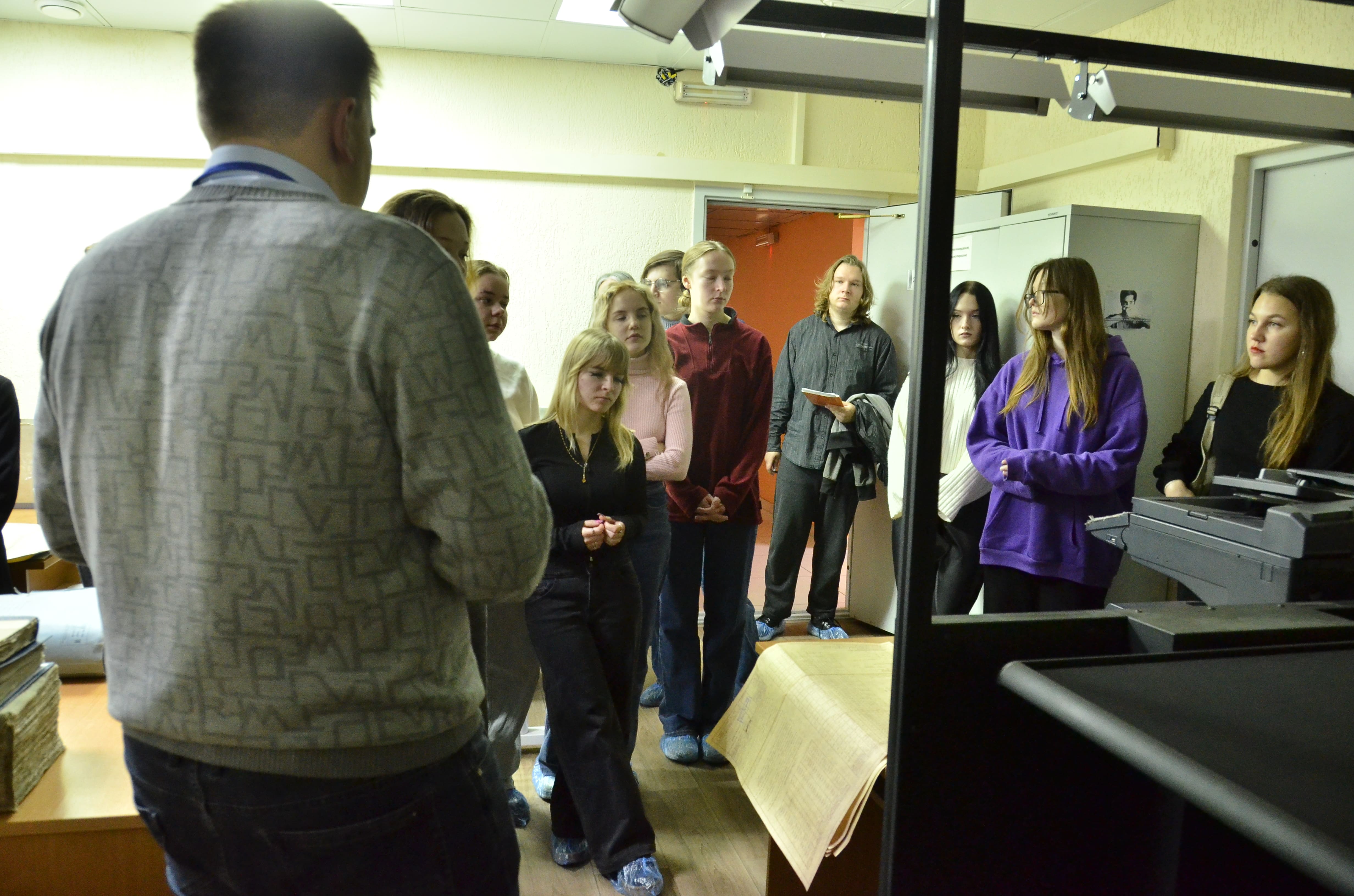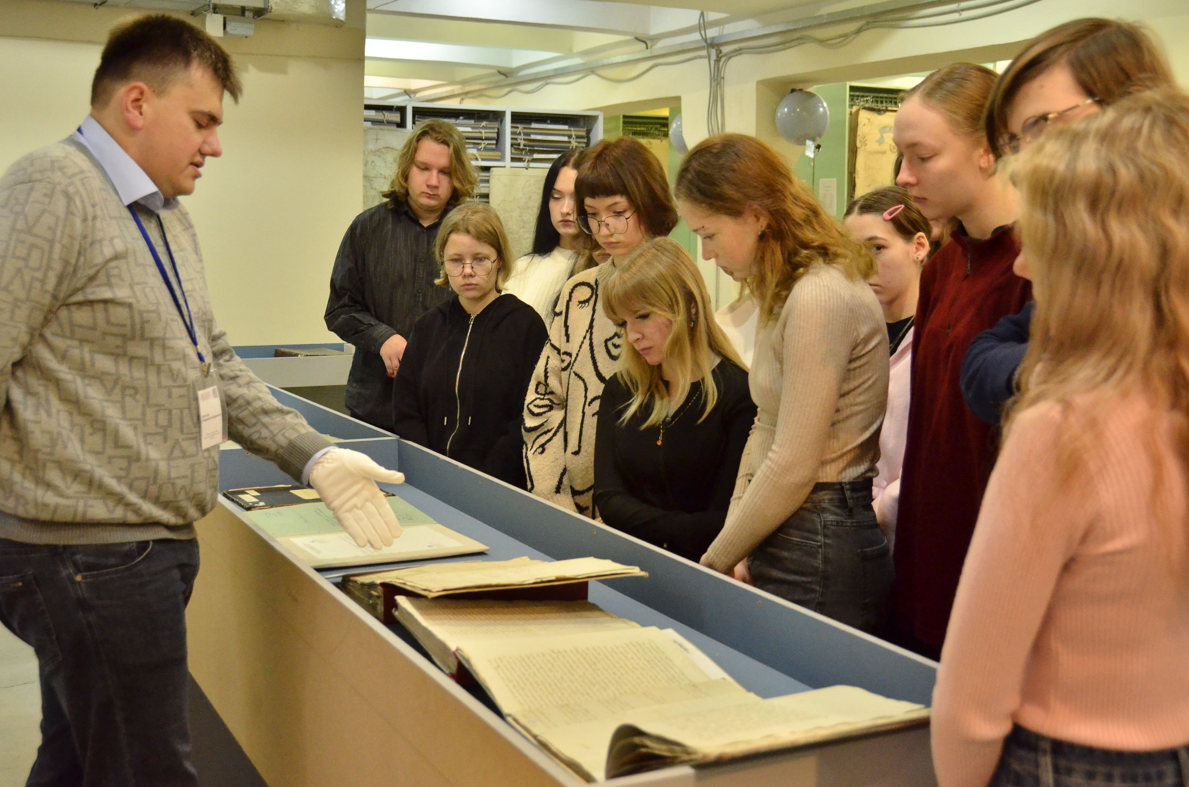 В ходе экскурсии, которую провел главный археограф научно–исследовательского отдела Владимир Арестов, гости побывали в архивохранилищах, читальных залах, секторе информационных технологий и лаборатории обеспечения сохранности архивных документов. Кроме того, гости архива побывали в архивохранилище для специальных носителей. В ходе экскурсии студенты познакомились с условиями хранения документов, процессом оцифровки и реставрации архивных дел.