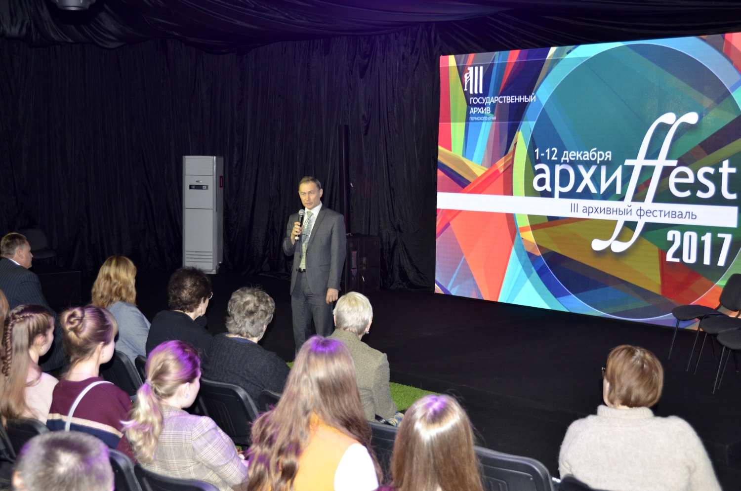 С приветственным словом выступил директор Государственного архива Пермского края Игорь Киреев. Он отметил, что «Архиffest» является уникальным событием. «Это площадка, на которой реализуются самые разные исторические проекты. Мы глубоко убеждены, что уникальные документы, хранителем которых является архив, должны быть доступны для граждан, доступны для исследователей. – отметил Игорь Киреев. – Следуя этой традиции, мы в рамках фестиваля презентуем исторические документы, которые раскрывают самые разные стороны истории Прикамья. Это и личные фонды, и архивные коллекции, и издания архива».