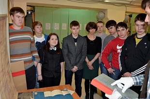 12 марта для студентов Пермского авиационного техникума им. А.Д. Швецова была проведена обзорная экскурсия по Государственному архиву Пермского края. Ян Мазитов, начальник отдела использования архивных документов, рассказал об истории архива, структуре и составе его фондов. Гости также познакомились с хранящимися в архиве документами по Алексеевскому реальному училищу, в здании которого ныне располагается авиационный техникум.