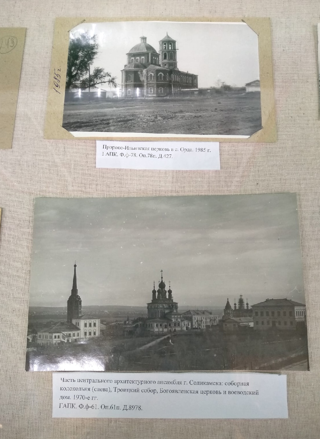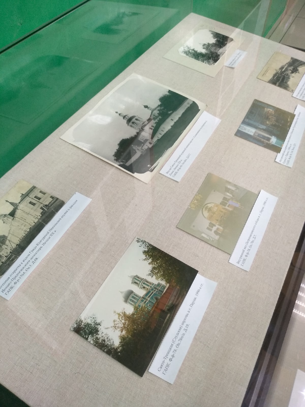 В трёх витринах размещены фотографии церквей, монастырей и других культовых зданий городов и сёл Прикамья различных конфессий. Этот тип фотографий является одной из наиболее востребованных среди исследователей категорий фотодокументов, хранящихся в фондах архива.