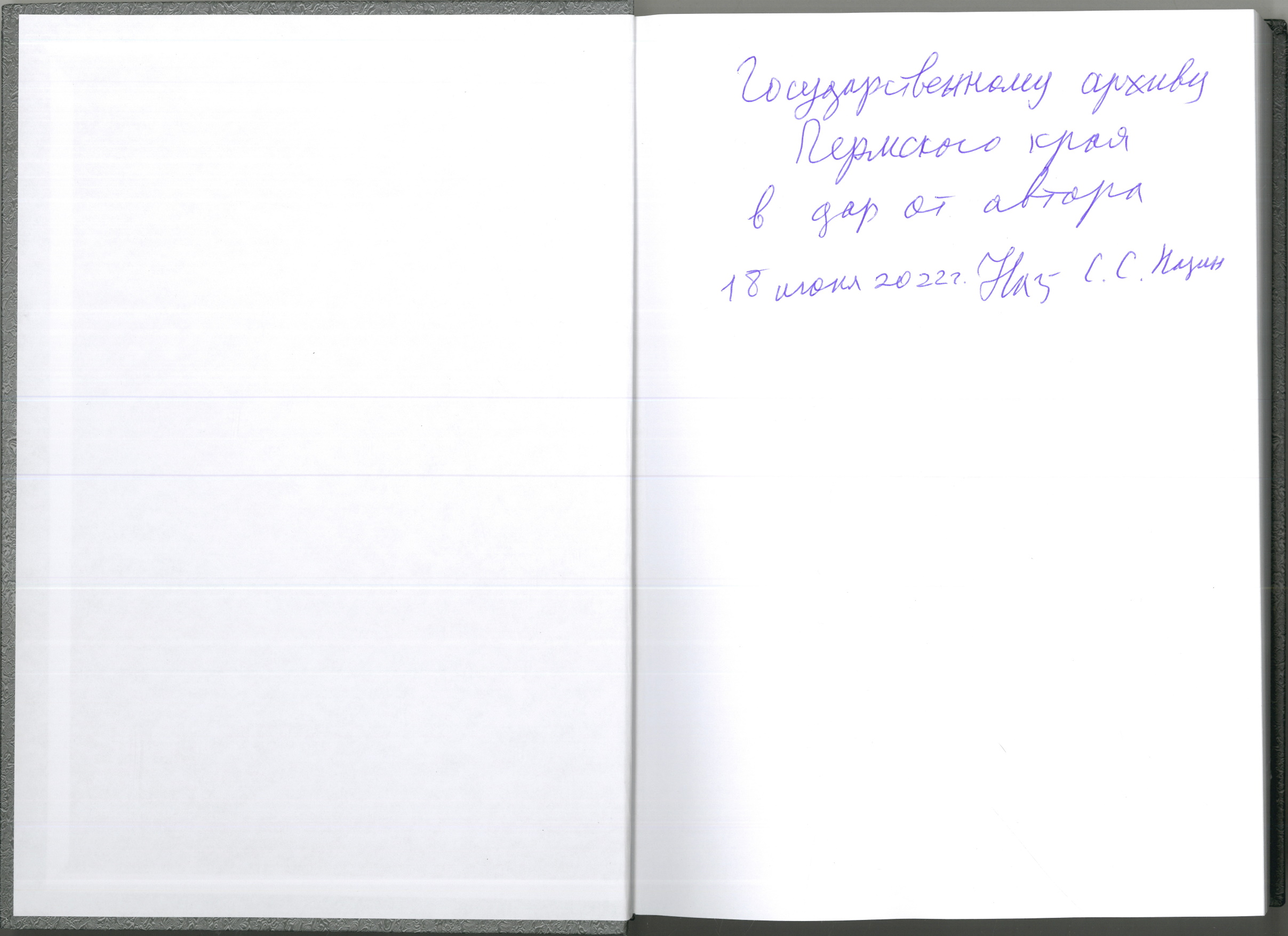 В фонд печатных изданий Государственного архива Пермского края в дар от автора была передана книга С.Н. Назина «Главные военные прокуроры. 1922–1941: исторические портреты» (М., 2021 г.).