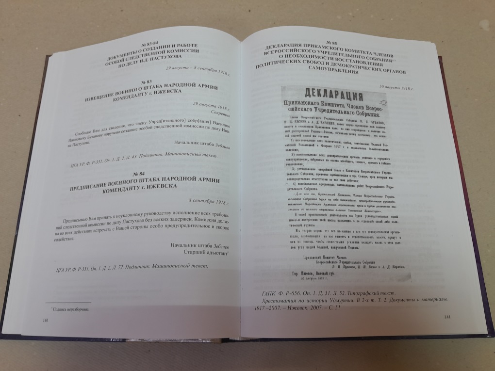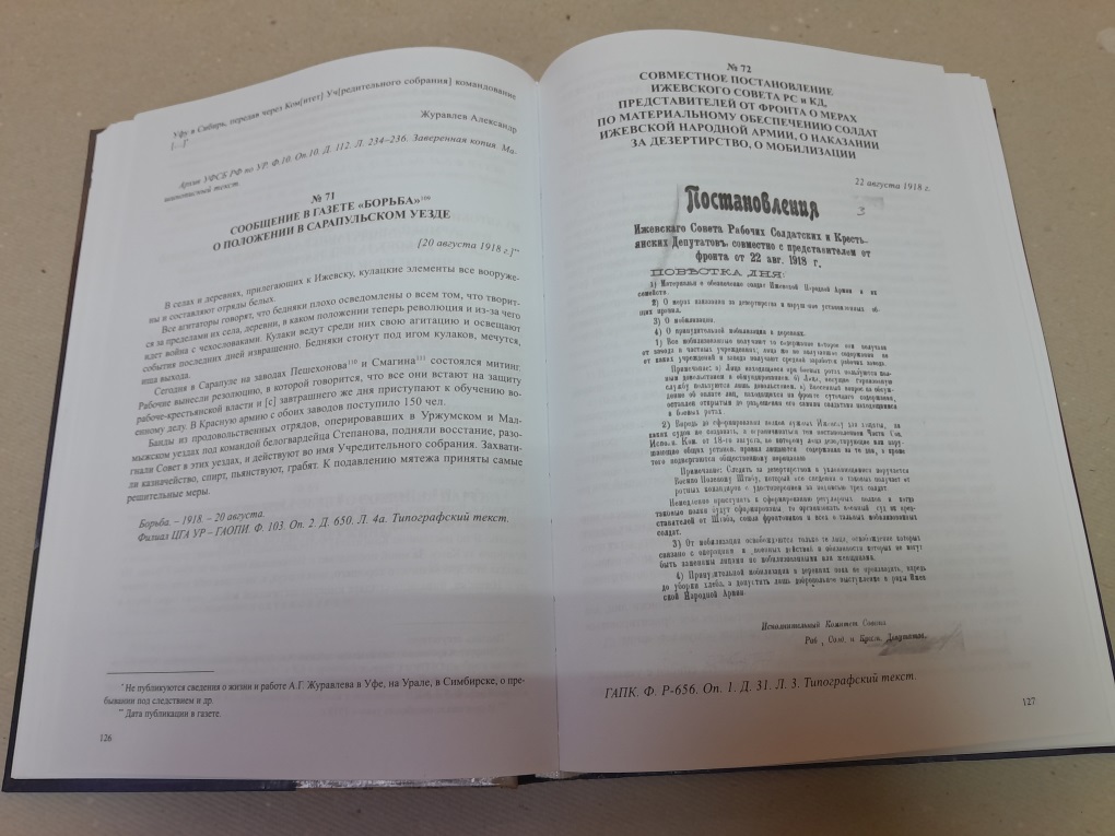 В Государственный архив Пермского края поступил экземпляр сборника архивных документов «Удмуртия в годы Гражданской войны. 1918-1919 гг.», изданного Комитетом по делам архивов при Правительстве Удмуртской республики. Издание состоит из 396 архивных документов, охватывающих период с апреля 1918 по август 1919 гг.