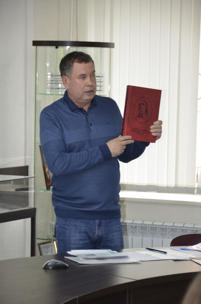 Владимир Михайлович рассказал о продвижении наследия Василия Татищева и Вильгельма де Геннина в Екатеринбурге, осветил вопросы взаимодействия с исследователями и организациями из Пермского края, Астраханской, Московской, Оренбургской, Самарской и Псковской областей, и контактов с наследниками рода Татищевых, проживающими в Подмосковье и Франции.