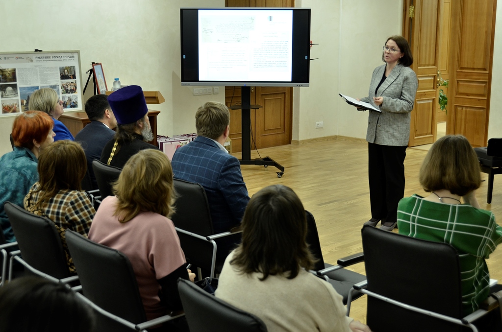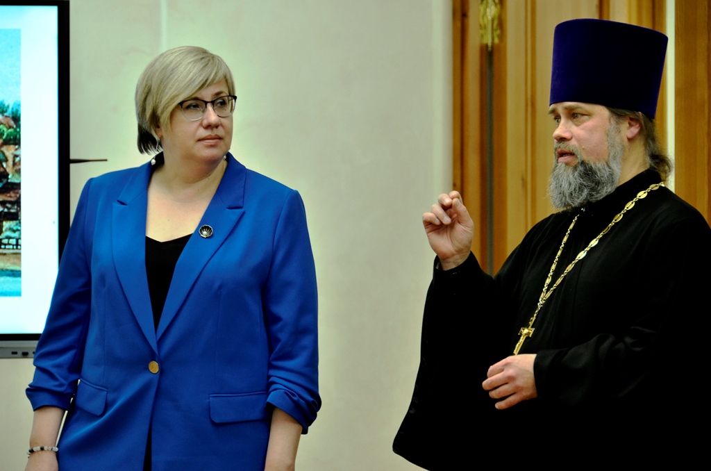 Ирина Демина, начальник научно-исследовательского отдела ГАПК во время встречи рассказала о неизвестных фактах жития священномученика Никиты (Делекторского) – настоятеля Петропавловского собора г. Перми 1916-1922 гг.