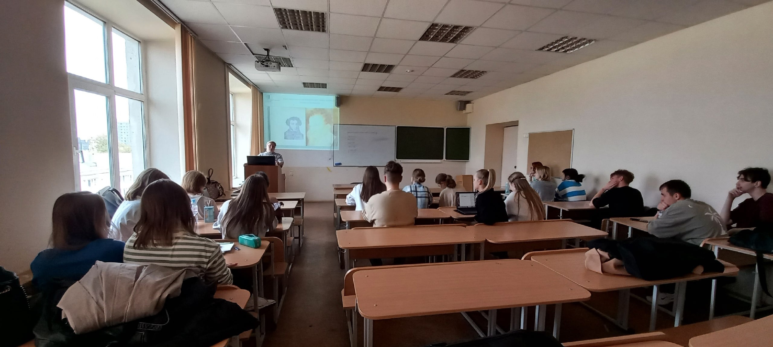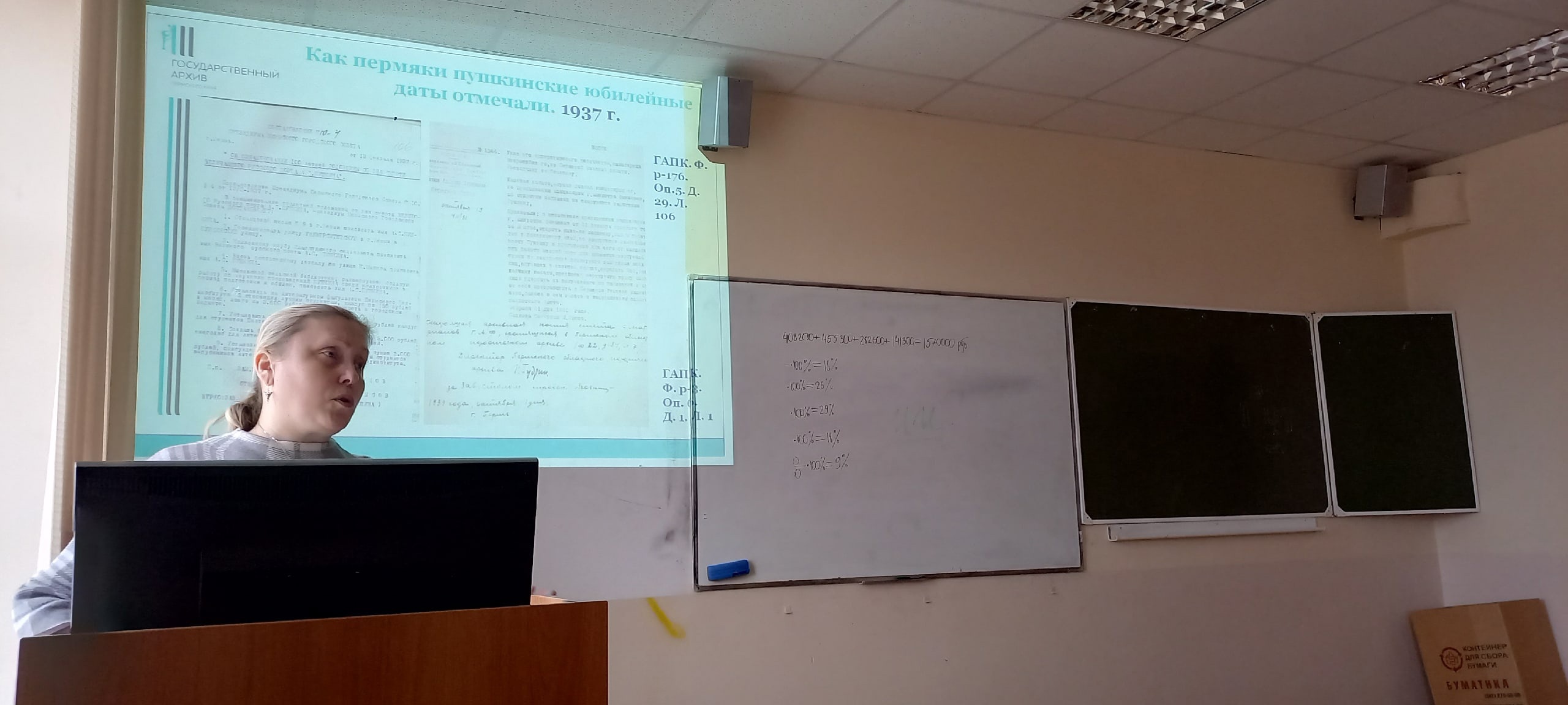 28 сентября в Пермском национальном исследовательском политехническом университете прошла лекция для студентов Гуманитарного факультета 2 курса специальности «Реклама и связи с общественностью», посвященная традициям празднования юбилеев великого русского поэта А.С.Пушкина в городе Перми. Занятие было приурочено к грядущему в 2024 году 225-летию поэта. В лекции Натальи Пирожковой, заместителя начальника научно-исследовательского отдела архива, были раскрыты особенности увековечивания памяти А.С. Пушкина в Перми в период с 1860-х гг. до наших дней. В ходе встречи были представлены документальные материалы из фондов административных органов, образовательных и культурных организаций Прикамья, рассказано также о посещении Перми потомками Пушкина. Студенты получили возможность поучаствовать в интерактивной интеллектуальной игре на знание творчества А.С. Пушкина и особенностей увековечения его памяти в Перми. Также были получены ответы на вопросы о том, почему так активно в Перми готовились к проведению мероприятий по юбилейным датам А.С. Пушкина и можно ли в наши дни считать поэта «брэндом».