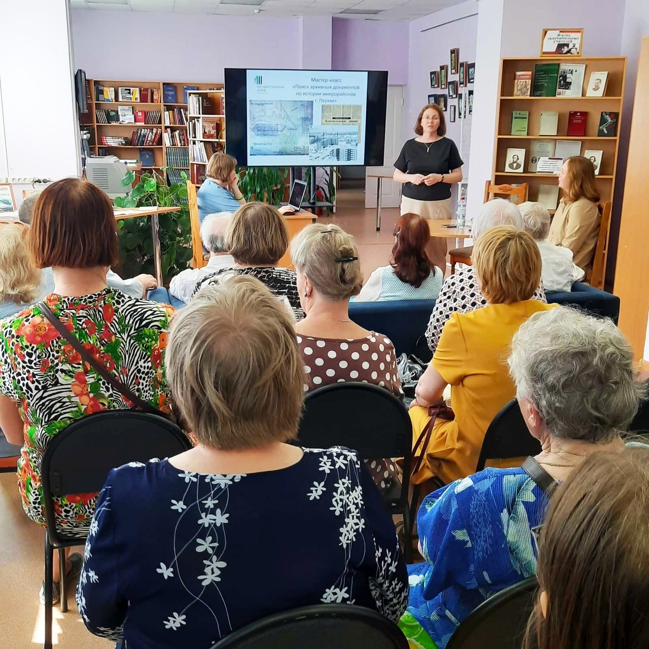25 мая на площадке пермской библиотеки №7 им. А.П. Чехова в рамках реализации архивного просветительского проекта «Пермские микрорайоны» прошла встреча сотрудников Государственного архива Пермского края с жителями микрорайонов Кировского района г. Перми. Встреча прошла при поддержке администрации Кировского района.
