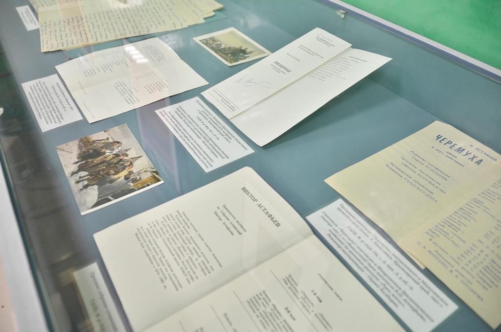 На выставке представлены подлинные документы, освещающие жизнь и творчество Виктора Петровича Астафьева и тему войны.