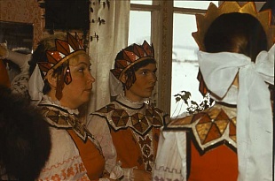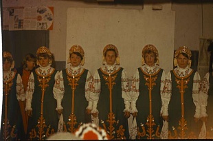 В Доме культуры с. Медведково Кишертского района Пермской области давал концерт агитпоезд, посвященного 70-летию Великой Октябрьской социалистической революции. На фото: выступление ансамбля Уральский хоровод, репетиция участников народного хора.